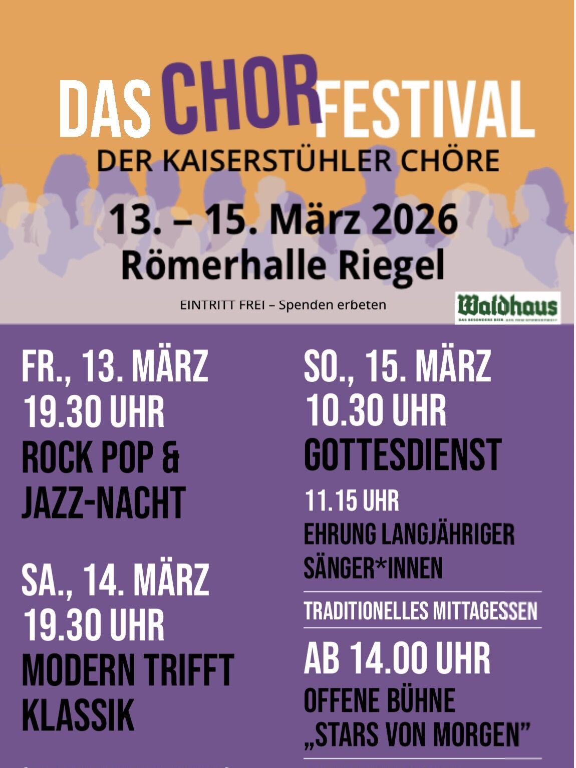 SWIPOGOS Der Riegeler Chor unter Leitung von Diana Schmitt lädt am Samstag, 21. Oktober, 20 Uhr, zum bunt gemischten Jahreskonzert in die Riegeler Römerhalle ein. Dazu hat sich die Truppe mit dem Ensemble Different Voices aus Freiburg und dem Chor... (Quelle öffnen)